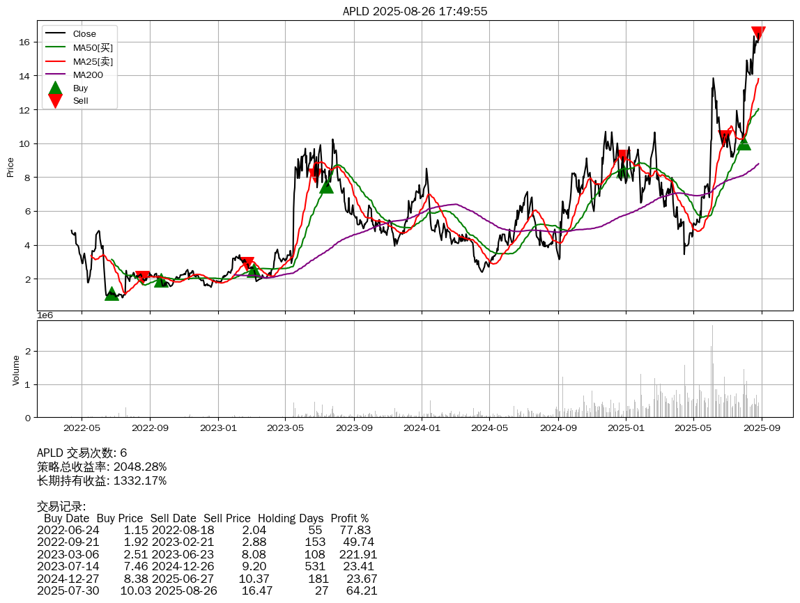 | 1 | APLD | +2048.28% | +1332.17% | +716.11% | 6 | 2022-04-13~2025-08-26 |