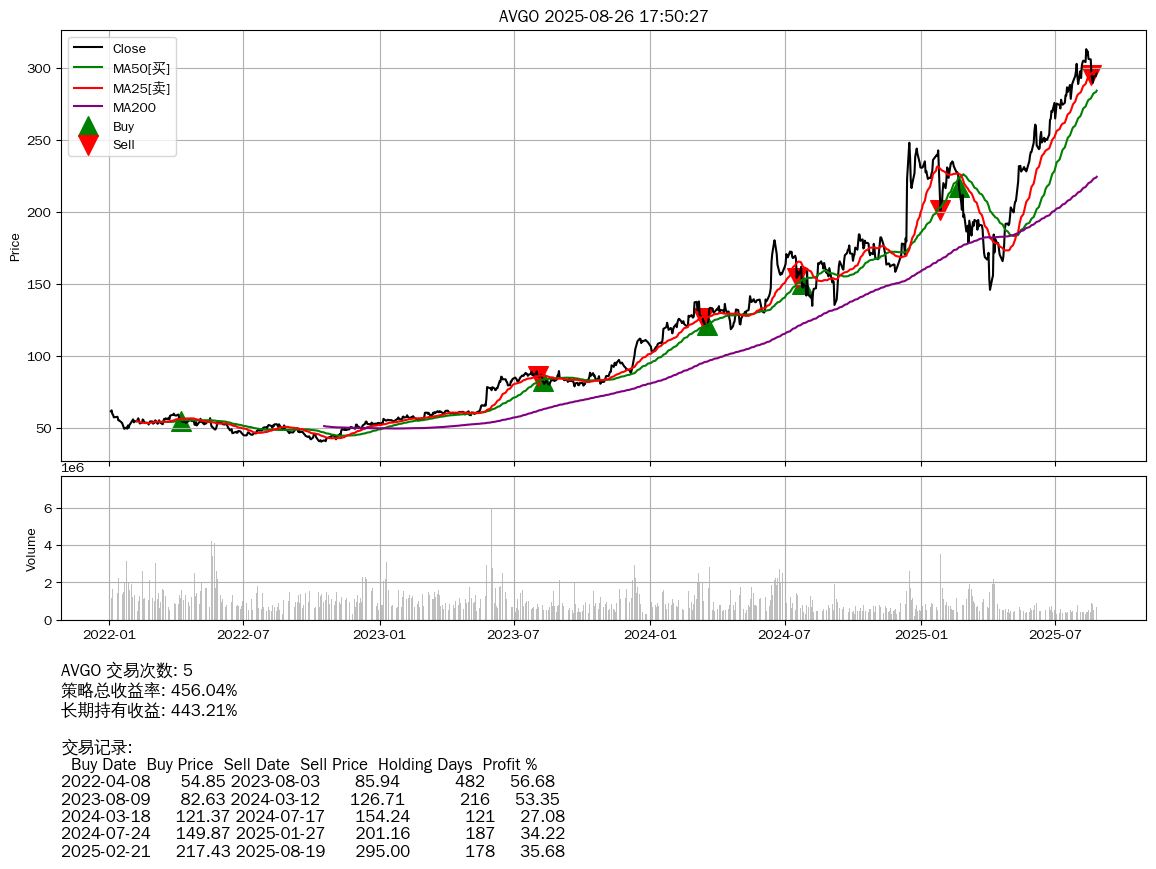 | 5 | AVGO | +456.04% | +443.21% | +12.83% | 5 | 2022-01-03~2025-08-26 |