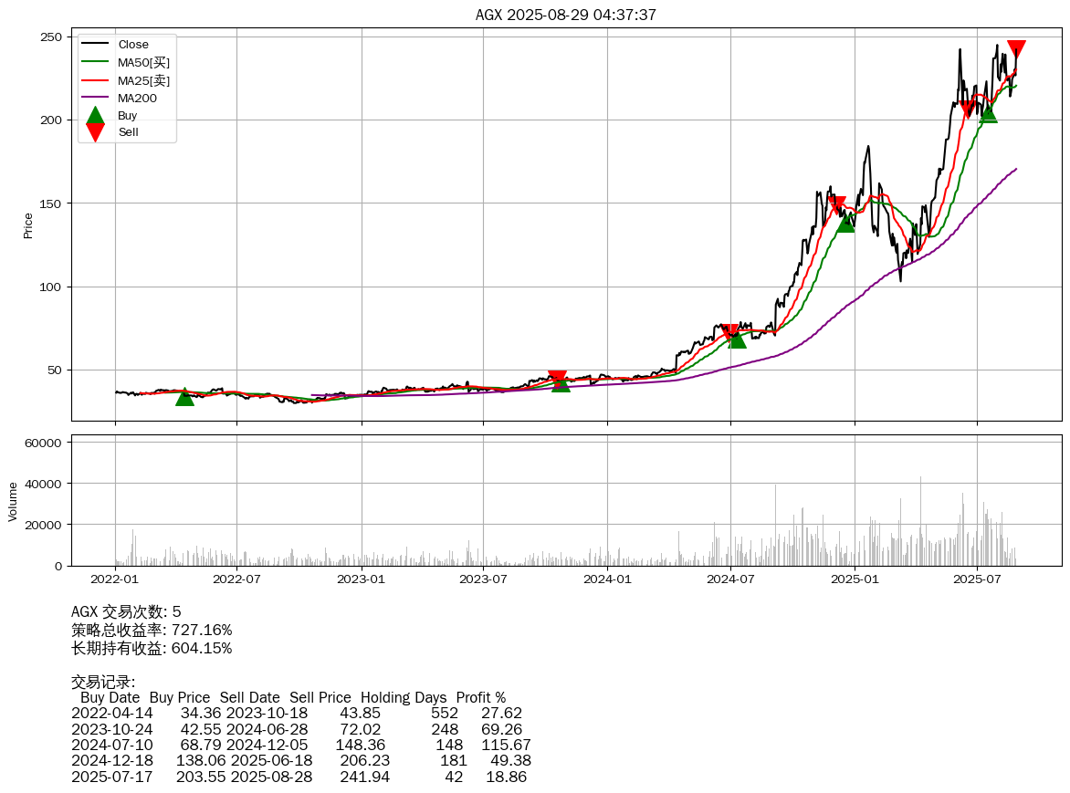 | 7 | AGX | +727.16% | +604.15% | +123.02% | 5 | 2022-01-03~2025-08-28 |