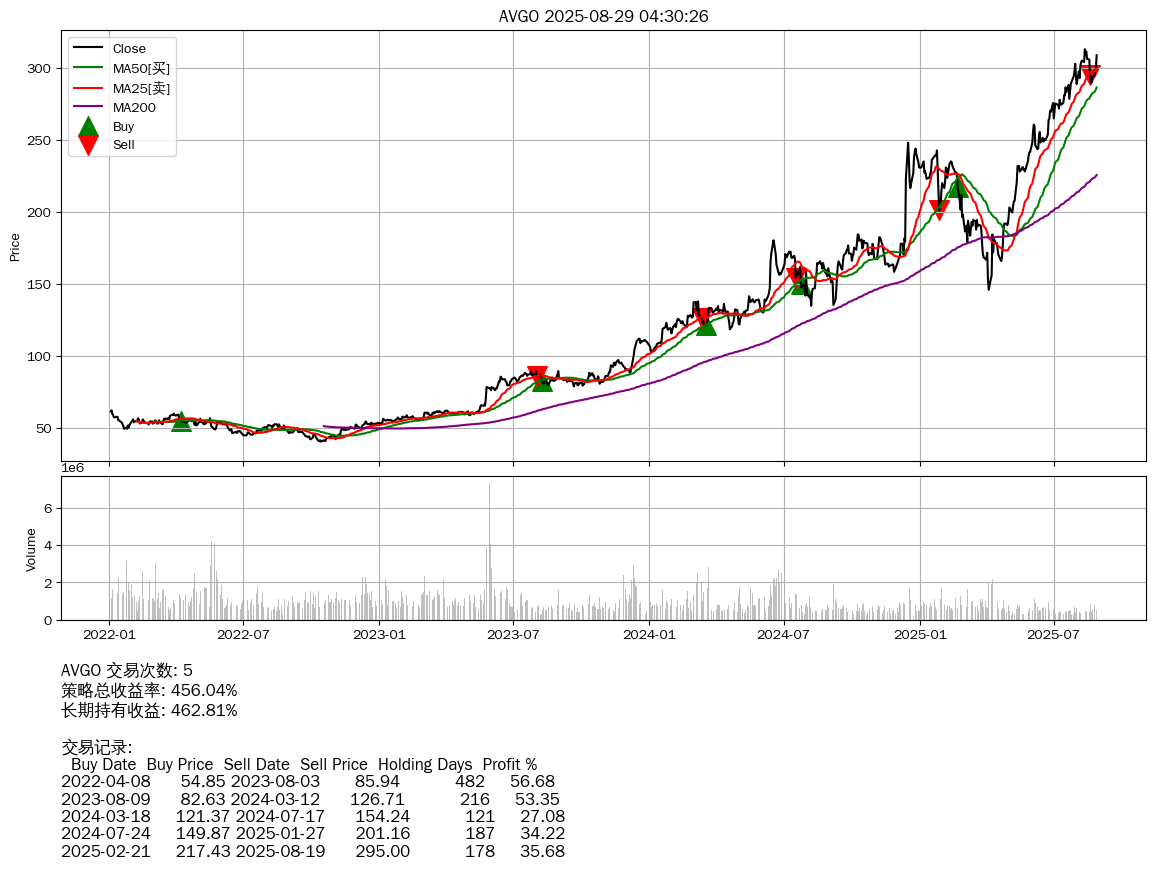 | 10 | AVGO | +456.04% | +462.81% | -6.77% | 5 | 2022-01-03~2025-08-28 |