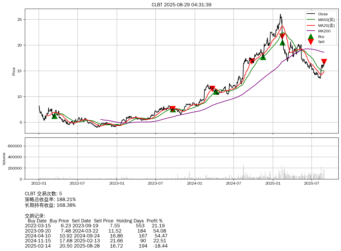 | 37 | CLBT | +188.21% | +168.38% | +19.83% | 5 | 2022-01-03~2025-08-28 |