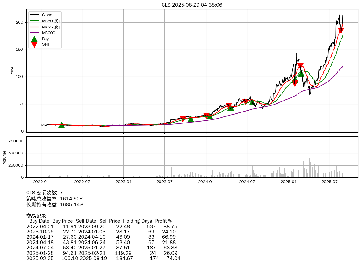 | 3 | CLS | +1614.50% | +1685.14% | -70.64% | 7 | 2022-01-03~2025-08-28 |