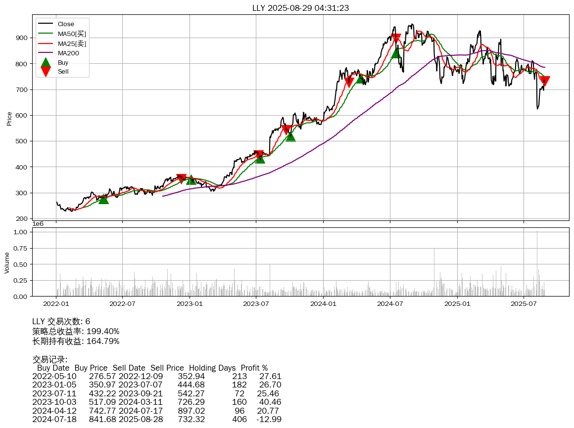 | 32 | LLY | +199.40% | +164.79% | +34.61% | 6 | 2022-01-03~2025-08-28 |