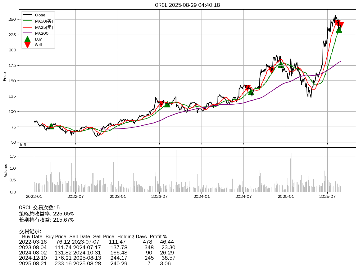 | 29 | ORCL | +225.65% | +215.67% | +9.98% | 5 | 2022-01-03~2025-08-28 |