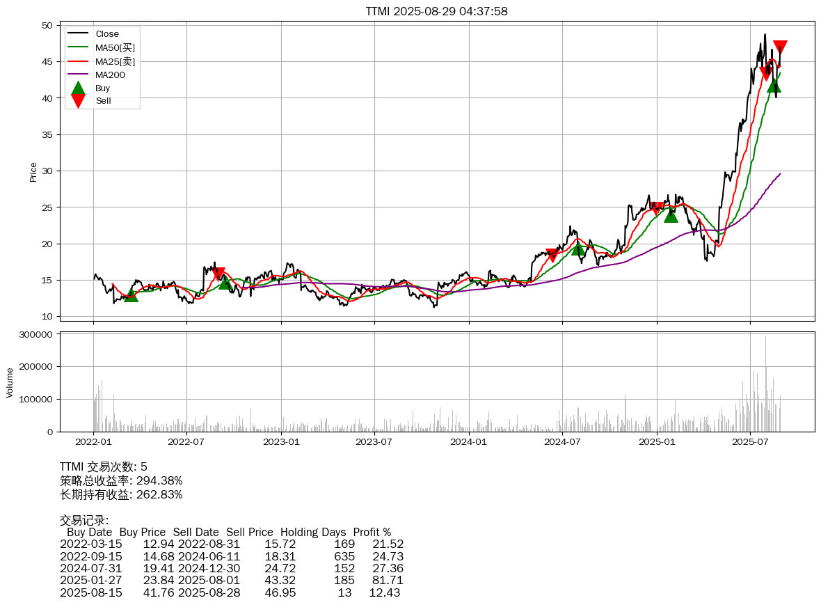 | 17 | TTMI | +294.38% | +262.83% | +31.55% | 5 | 2022-01-03~2025-08-28 |