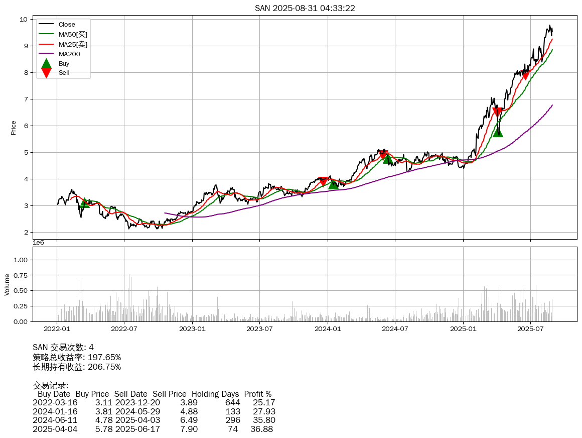 | 27 | SAN | +197.65% | +206.75% | -9.10% | 4 | 2022-01-03~2025-08-29 |