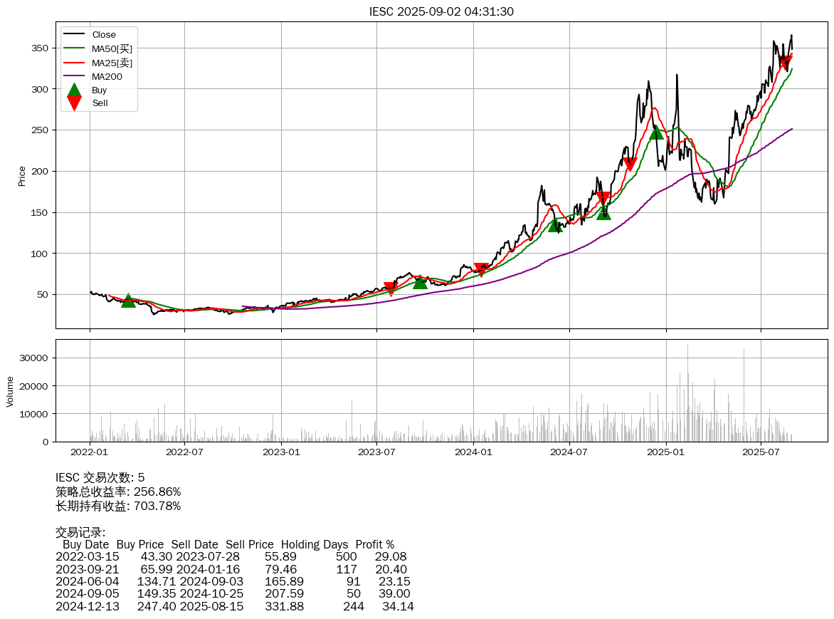 | 14 | IESC | +256.86% | +703.78% | -446.92% | 5 | 2022-01-03~2025-08-29 |