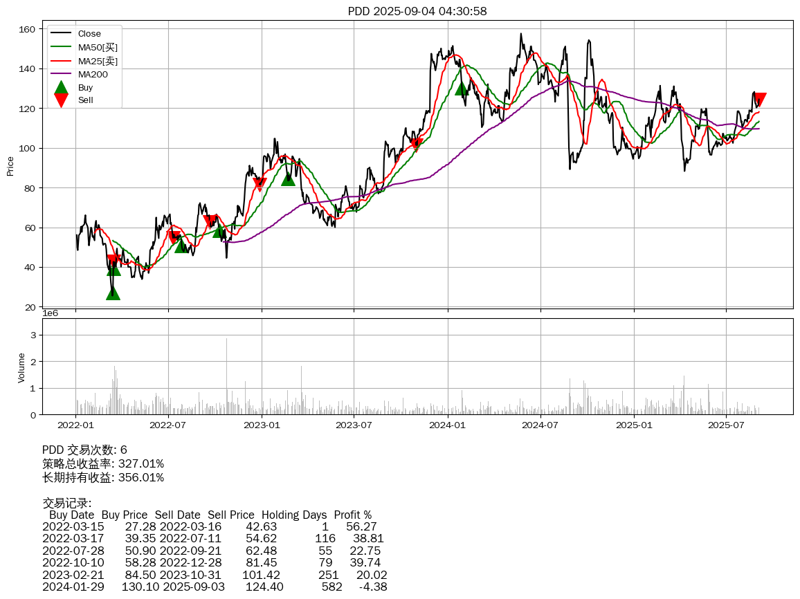| 6 | PDD | +325.09% | +353.96% | -28.87% | 6 | 2022-01-03~2025-09-04 |