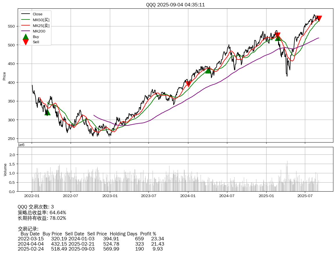 | 26 | QQQ | +66.17% | +79.66% | -13.49% | 3 | 2022-01-03~2025-09-04 |