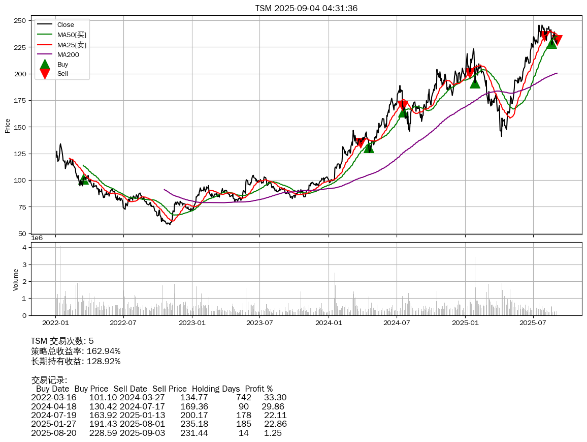 | 10 | TSM | +167.20% | +132.63% | +34.58% | 5 | 2022-01-03~2025-09-04 |