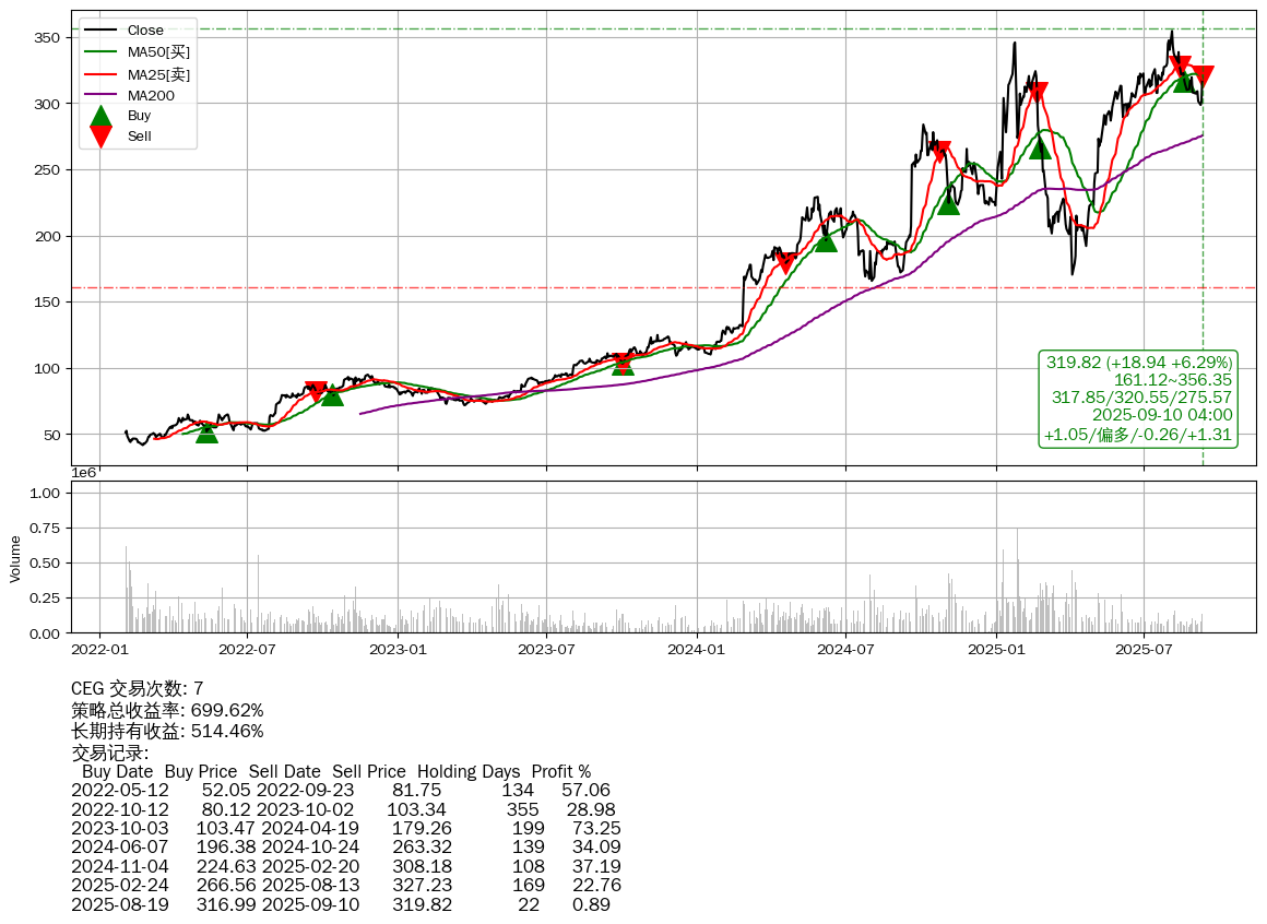 | 6 | CEG | +699.62% | +514.46% | +185.17% | 7 | +1.05/偏多/-0.26/+1.31 | 2022-02-02~2025-09-10 |