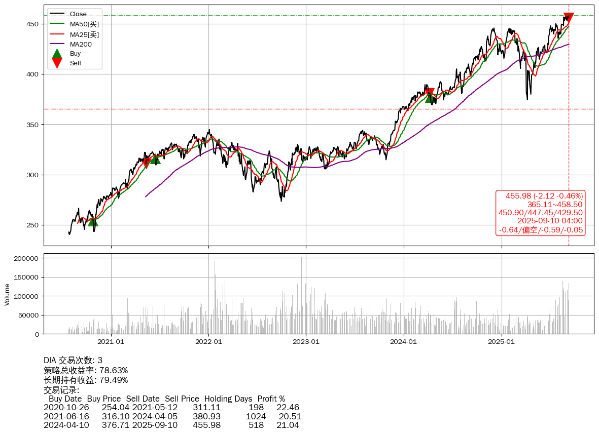 | 64 | DIA | +78.63% | +79.49% | -0.86% | 3 | -0.64/偏空/-0.59/-0.05 | 2020-07-27~2025-09-10 |