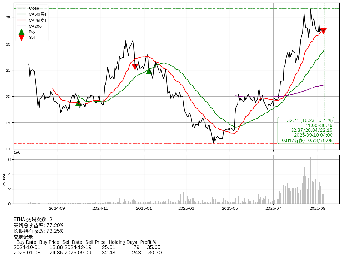 | 65 | ★ETHA | +77.29% | +73.25% | +4.04% | 2 | +0.81/偏多/+0.73/+0.08 | 2024-07-23~2025-09-10 |