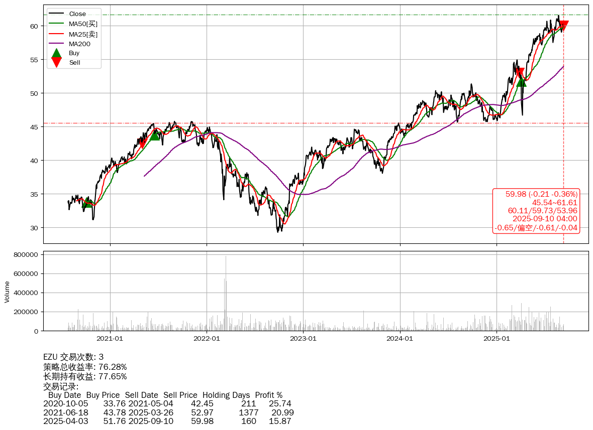 | 67 | EZU | +76.28% | +77.65% | -1.37% | 3 | -0.65/偏空/-0.61/-0.04 | 2020-07-27~2025-09-10 |