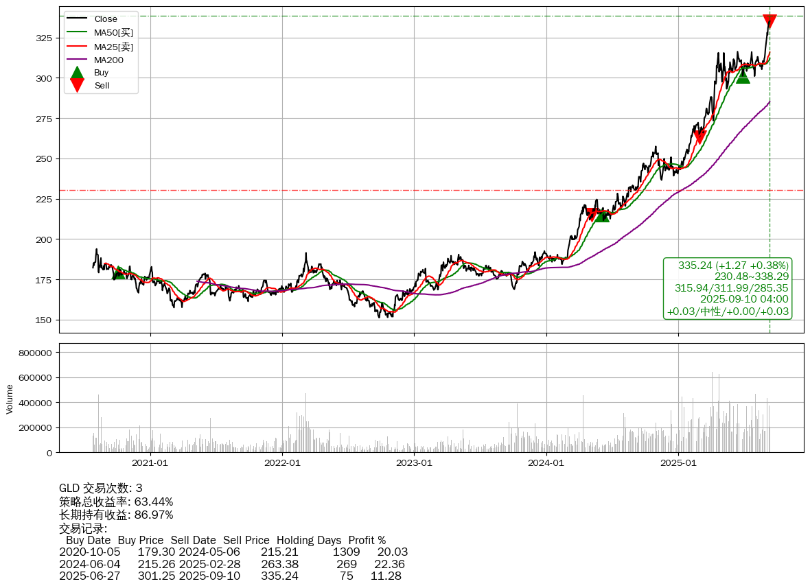 | 70 | ★GLD | +63.44% | +86.97% | -23.54% | 3 | +0.03/中性/+0.00/+0.03 | 2020-07-27~2025-09-10 |