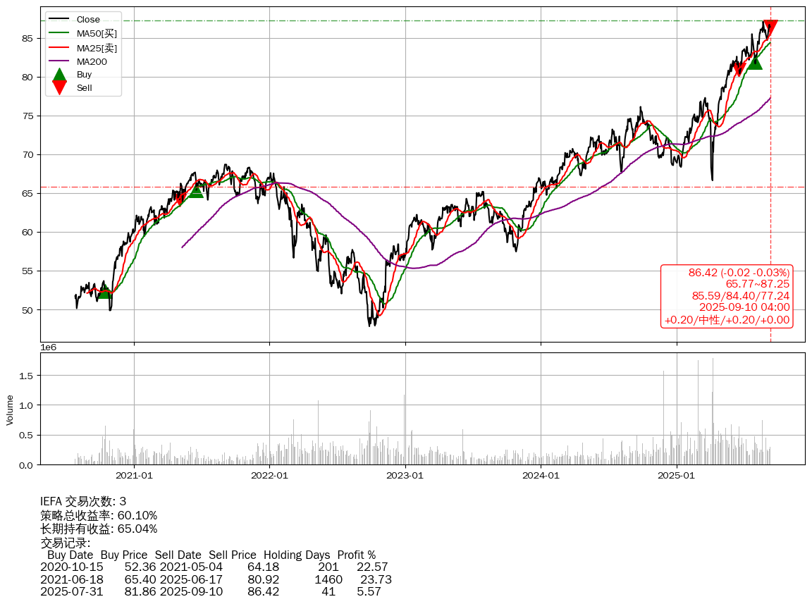 | 74 | IEFA | +60.10% | +65.04% | -4.94% | 3 | +0.20/中性/+0.20/+0.00 | 2020-07-27~2025-09-10 |