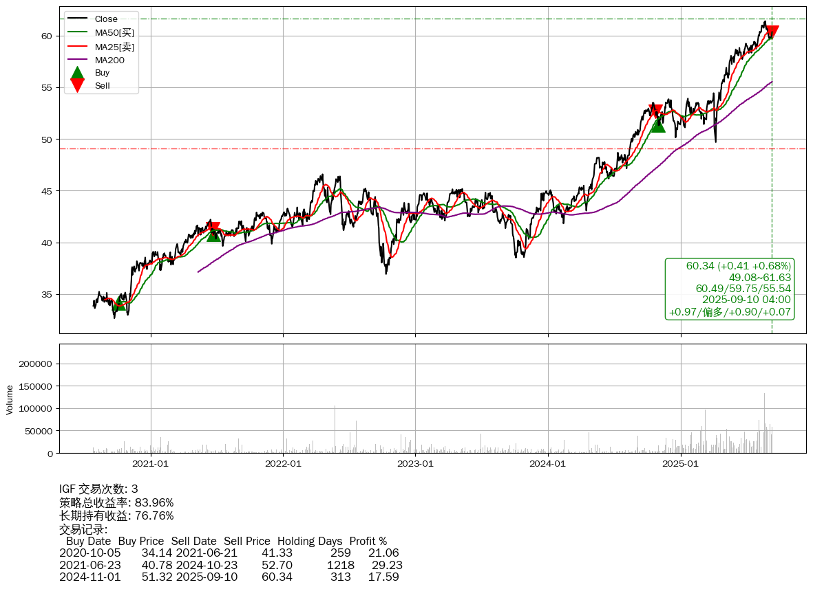 | 59 | IGF | +83.96% | +76.76% | +7.21% | 3 | +0.97/偏多/+0.90/+0.07 | 2020-07-27~2025-09-10 |