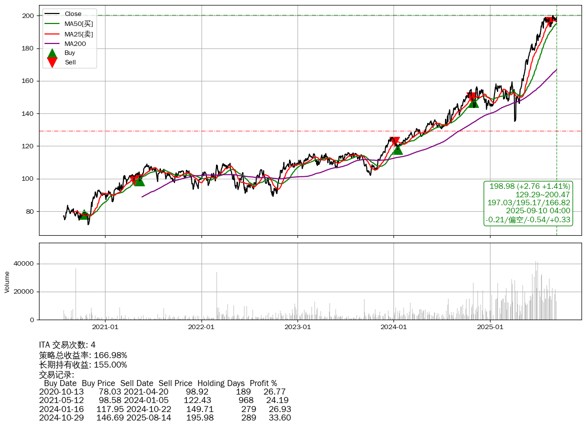 | 24 | ★ITA | +166.98% | +155.00% | +11.97% | 4 | -0.21/偏空/-0.54/+0.33 | 2020-07-27~2025-09-10 |