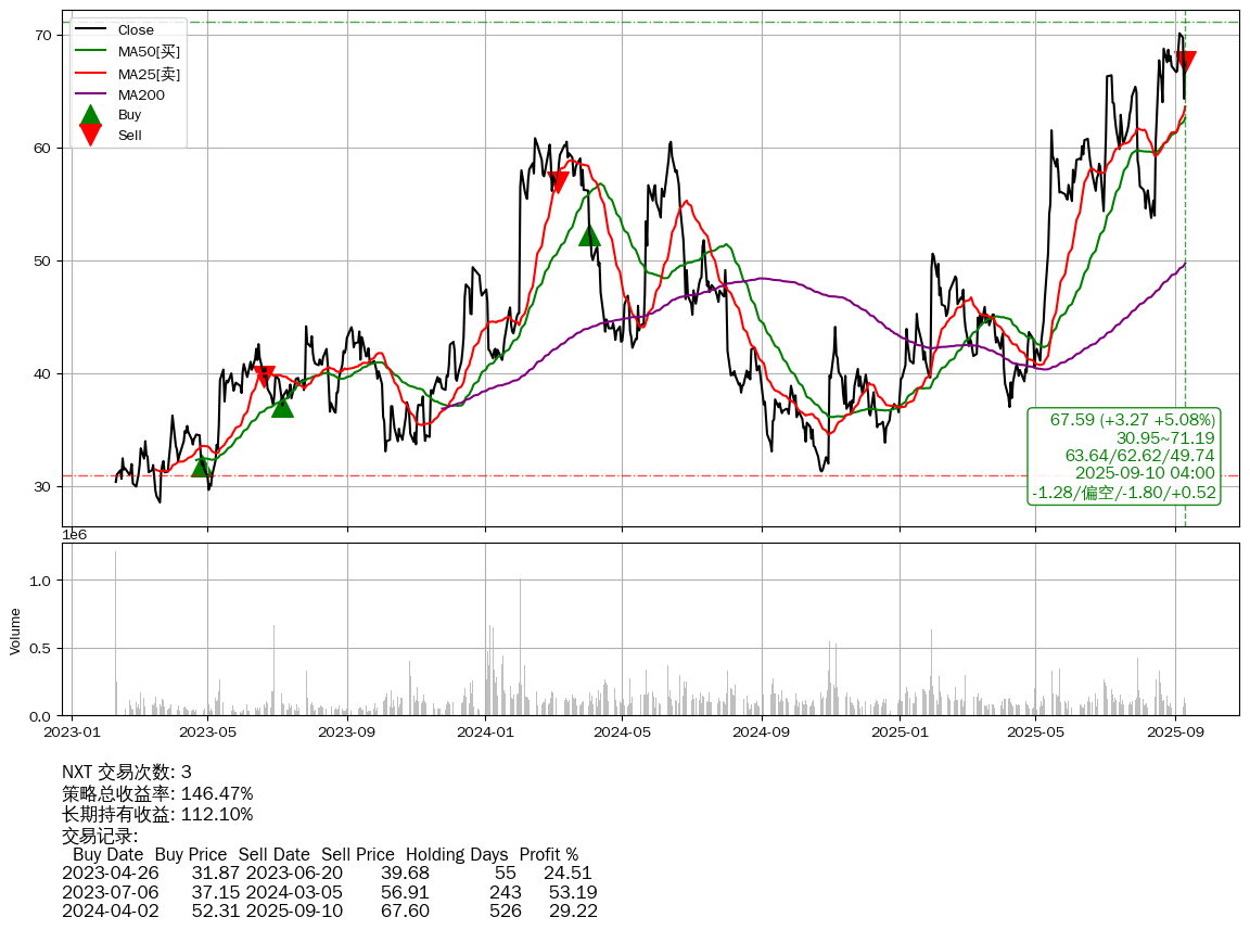 | 29 | NXT | +146.47% | +112.10% | +34.37% | 3 | -1.28/偏空/-1.80/+0.52 | 2023-02-09~2025-09-10 |