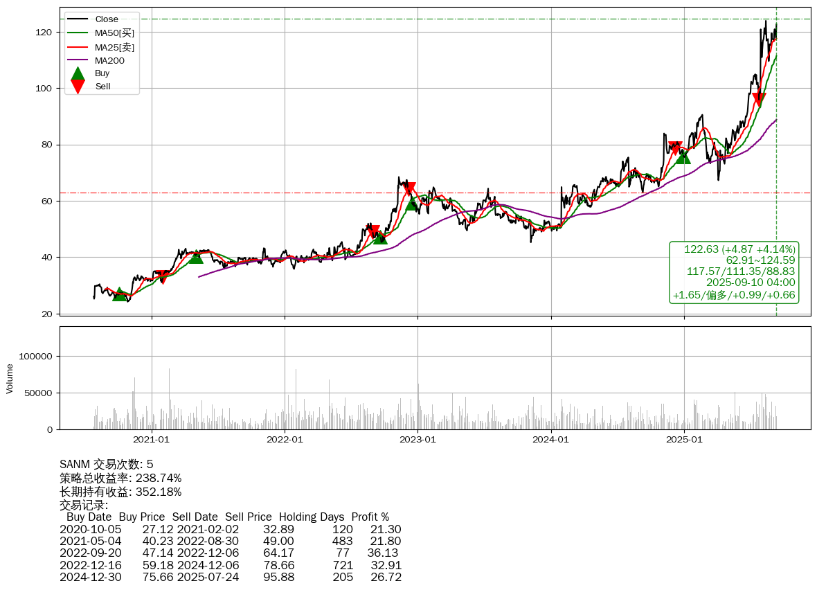 | 15 | SANM | +238.74% | +352.18% | -113.44% | 5 | +1.65/偏多/+0.99/+0.66 | 2020-07-27~2025-09-10 |