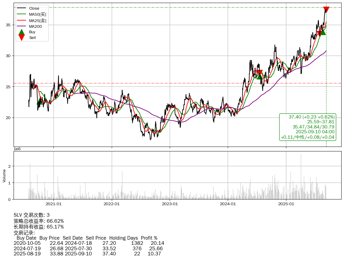 | 69 | ★SLV | +66.62% | +65.17% | +1.45% | 3 | +0.11/中性/+0.08/+0.04 | 2020-07-27~2025-09-10 |
