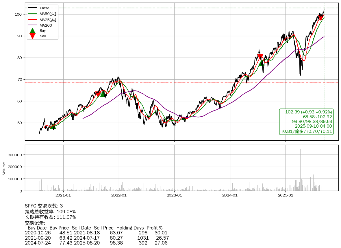 | 45 | ★SPYG | +109.08% | +111.07% | -1.99% | 3 | +0.81/偏多/+0.70/+0.11 | 2020-07-27~2025-09-10 |