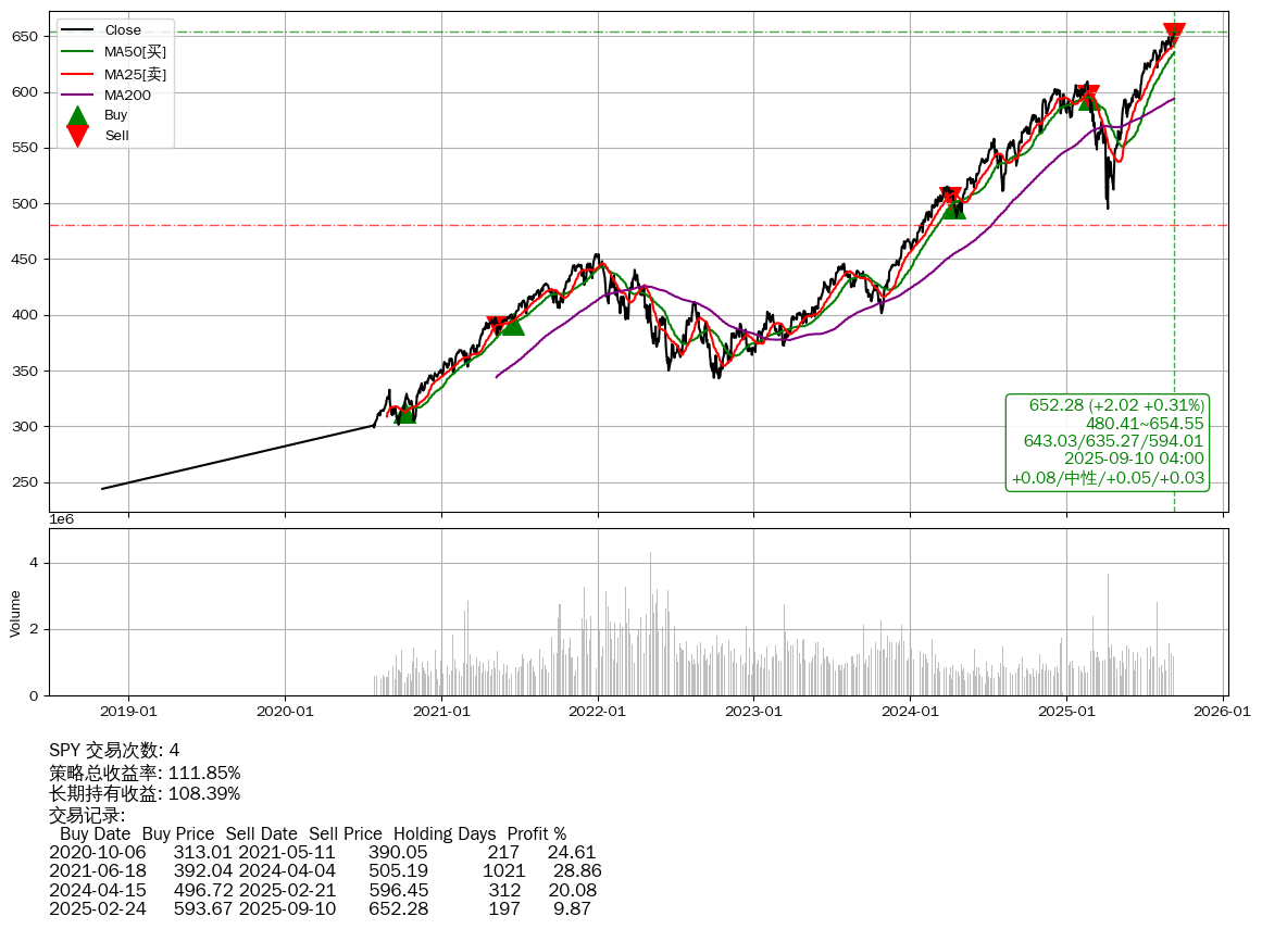 | 43 | ★SPY | +111.85% | +108.39% | +3.46% | 4 | +0.08/中性/+0.05/+0.03 | 2018-11-01~2025-09-10 |