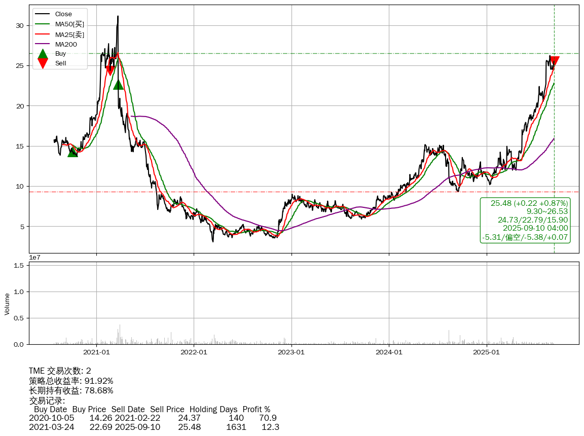 | 55 | TME | +91.92% | +78.68% | +13.24% | 2 | -5.31/偏空/-5.38/+0.07 | 2020-07-27~2025-09-10 |