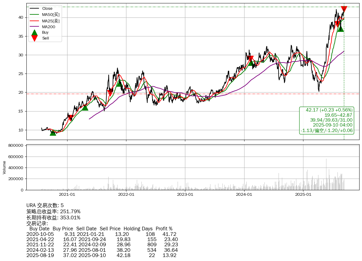 | 14 | ★URA | +251.79% | +353.01% | -101.21% | 5 | -1.13/偏空/-1.20/+0.06 | 2020-07-27~2025-09-10 |
