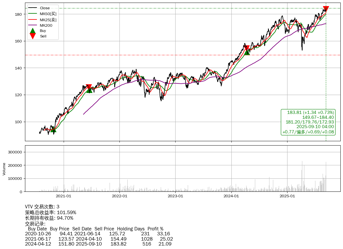 | 49 | VTV | +101.59% | +94.70% | +6.89% | 3 | +0.77/偏多/+0.69/+0.08 | 2020-07-27~2025-09-10 |
