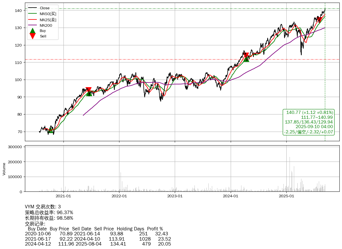 | 54 | VYM | +96.37% | +98.58% | -2.20% | 3 | -2.25/偏空/-2.32/+0.07 | 2020-07-27~2025-09-10 |
