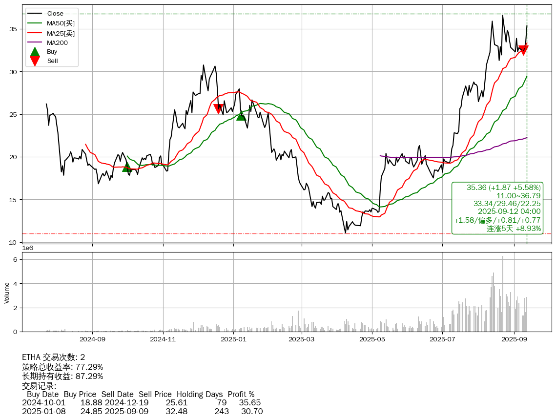 | 48 | ★ETHA | +77.29% | +87.29% | -9.99% | 2 | +1.58/偏多/+0.81/+0.77 | 2024-07-23~2025-09-12 |