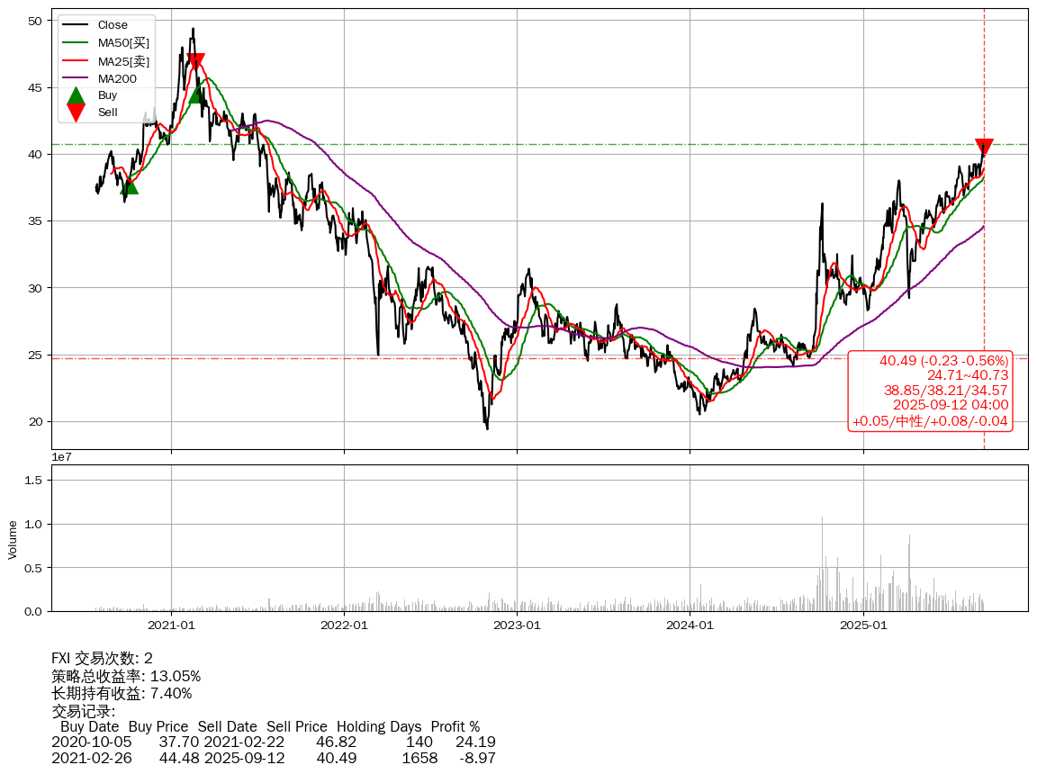 | 60 | ★FXI | +13.05% | +7.40% | +5.65% | 2 | +0.05/中性/+0.08/-0.04 | 2020-07-27~2025-09-12 |