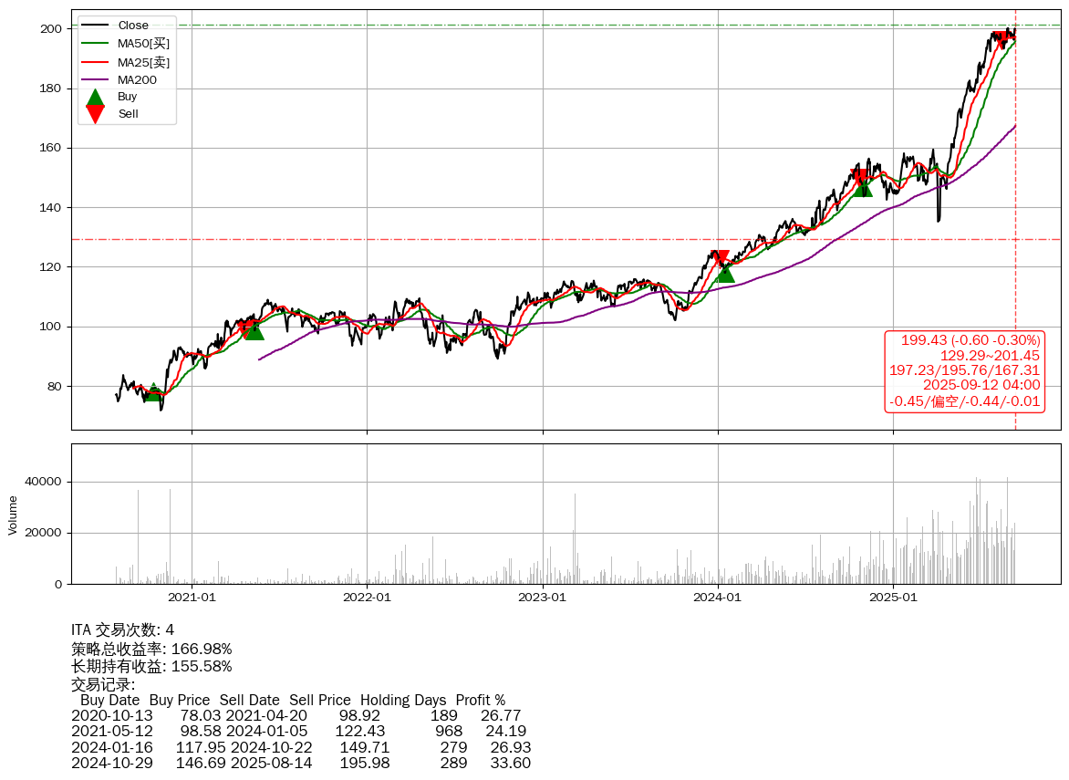 | 19 | ★ITA | +166.98% | +155.58% | +11.40% | 4 | -0.45/偏空/-0.44/-0.01 | 2020-07-27~2025-09-12 |