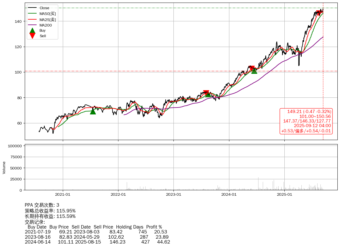 | 32 | ★PPA | +115.95% | +115.59% | +0.36% | 3 | +0.53/偏多/+0.54/-0.01 | 2020-07-29~2025-09-12 |