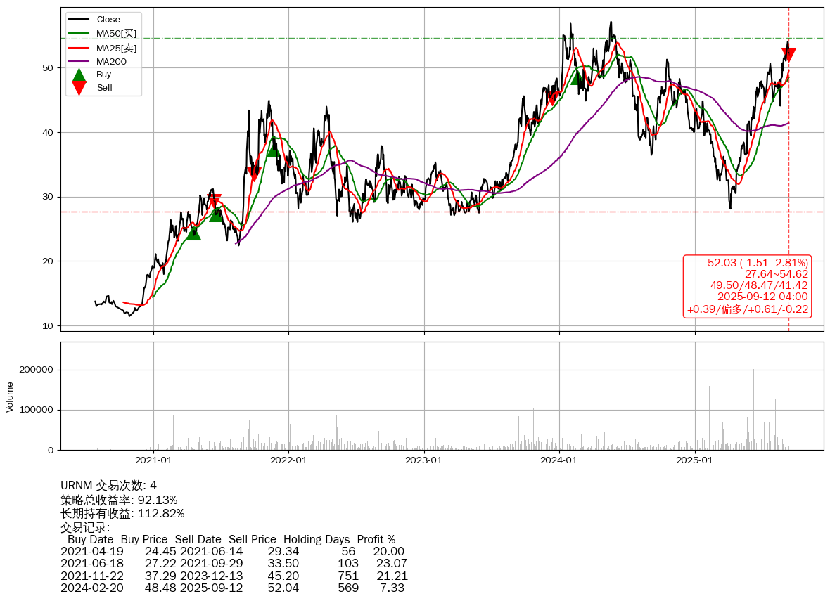 | 40 | ★URNM | +92.13% | +112.82% | -20.69% | 4 | +0.39/偏多/+0.61/-0.22 | 2020-07-28~2025-09-12 |