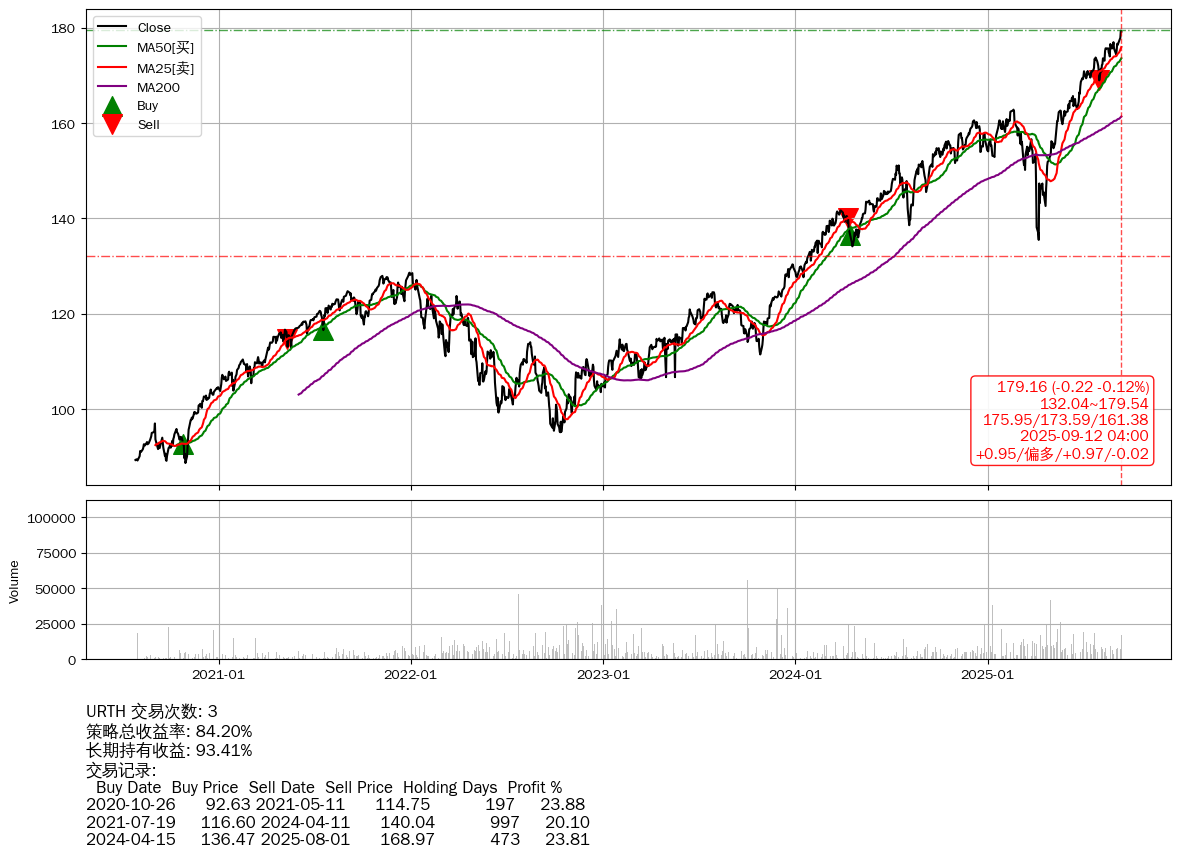 | 44 | ★URTH | +84.20% | +93.41% | -9.21% | 3 | +0.95/偏多/+0.97/-0.02 | 2020-07-27~2025-09-12 |