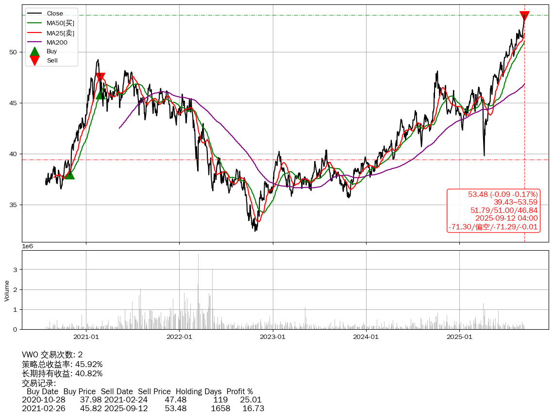 | 58 | ★VWO | +45.92% | +40.82% | +5.10% | 2 | -71.30/偏空/-71.29/-0.01 | 2020-07-27~2025-09-12 |