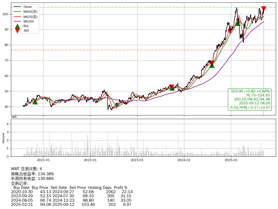 | 26 | ★WMT | +134.38% | +139.88% | -5.50% | 4 | -0.10/中性/-0.17/+0.07 | 2020-07-27~2025-09-12 |