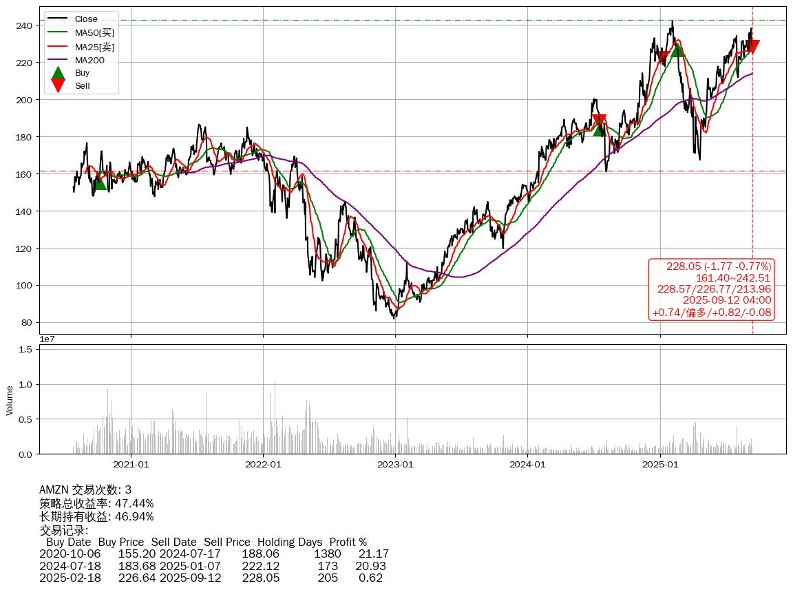 | 58 | ★AMZN | +47.44% | +46.94% | +0.50% | 3 | +0.74/偏多/+0.82/-0.08 | 2020-07-27~2025-09-12 |