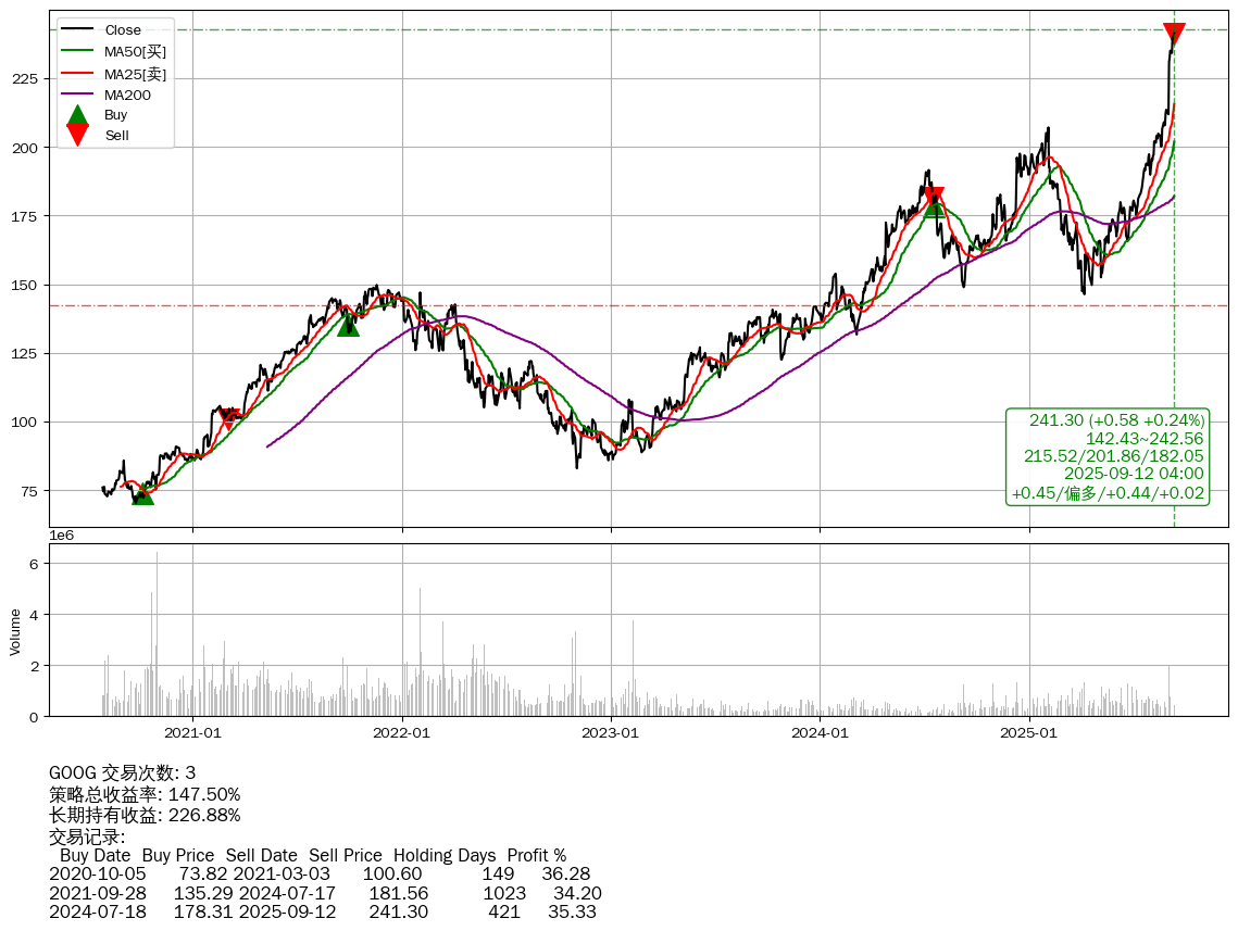 | 24 | ★GOOG | +147.50% | +226.88% | -79.37% | 3 | +0.45/偏多/+0.44/+0.02 | 2020-07-27~2025-09-12 |