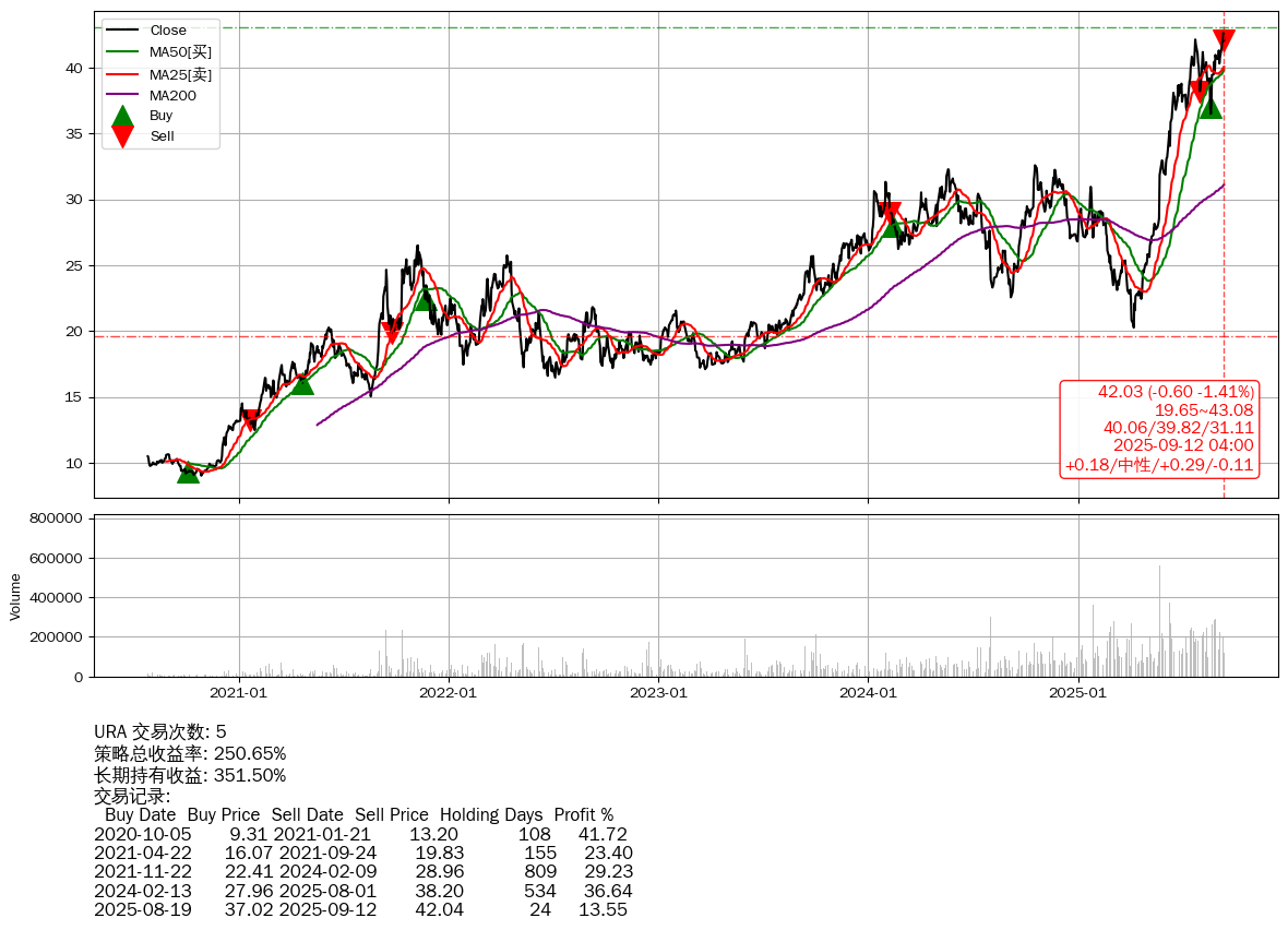 | 9 | ★URA | +250.65% | +351.50% | -100.85% | 5 | +0.18/中性/+0.29/-0.11 | 2020-07-27~2025-09-12 |