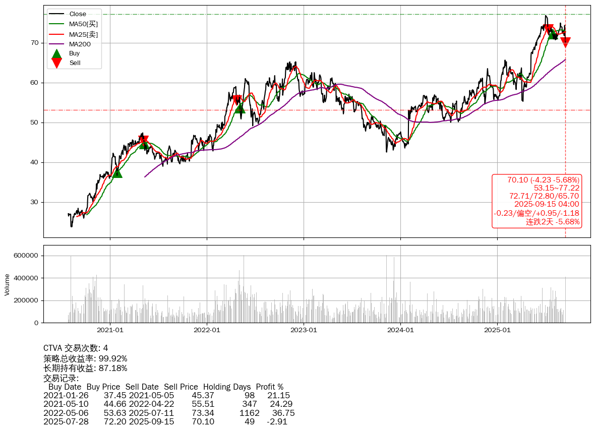 | 45 | CTVA | +99.92% | +87.18% | +12.74% | 4 | -0.23/偏空/+0.95/-1.18 | 2020-07-27~2025-09-15 |
