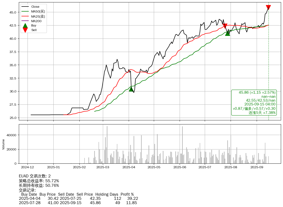 | 61 | ★EUAD | +55.72% | +50.76% | +4.96% | 2 | +0.87/偏多/+0.57/+0.30 | 2024-12-05~2025-09-15 |