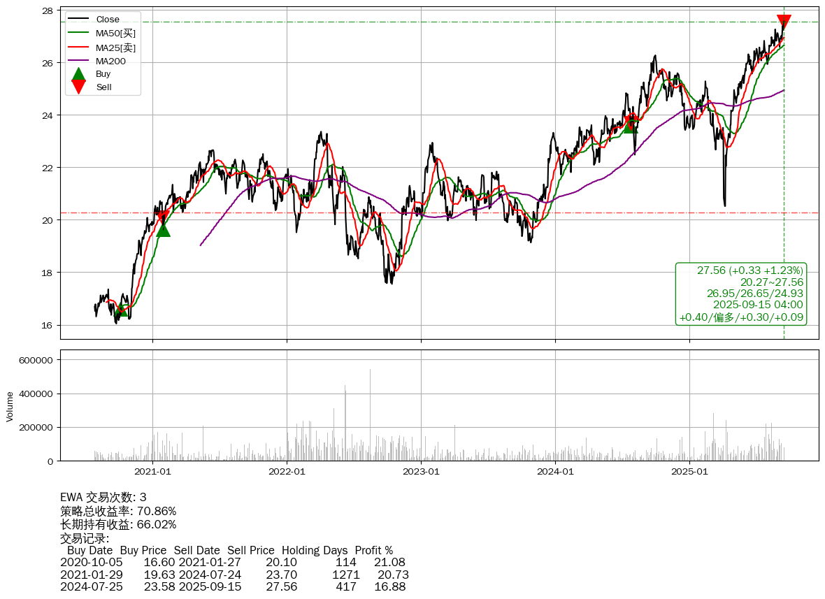 | 55 | EWA | +70.86% | +66.02% | +4.83% | 3 | +0.40/偏多/+0.30/+0.09 | 2020-07-27~2025-09-15 |