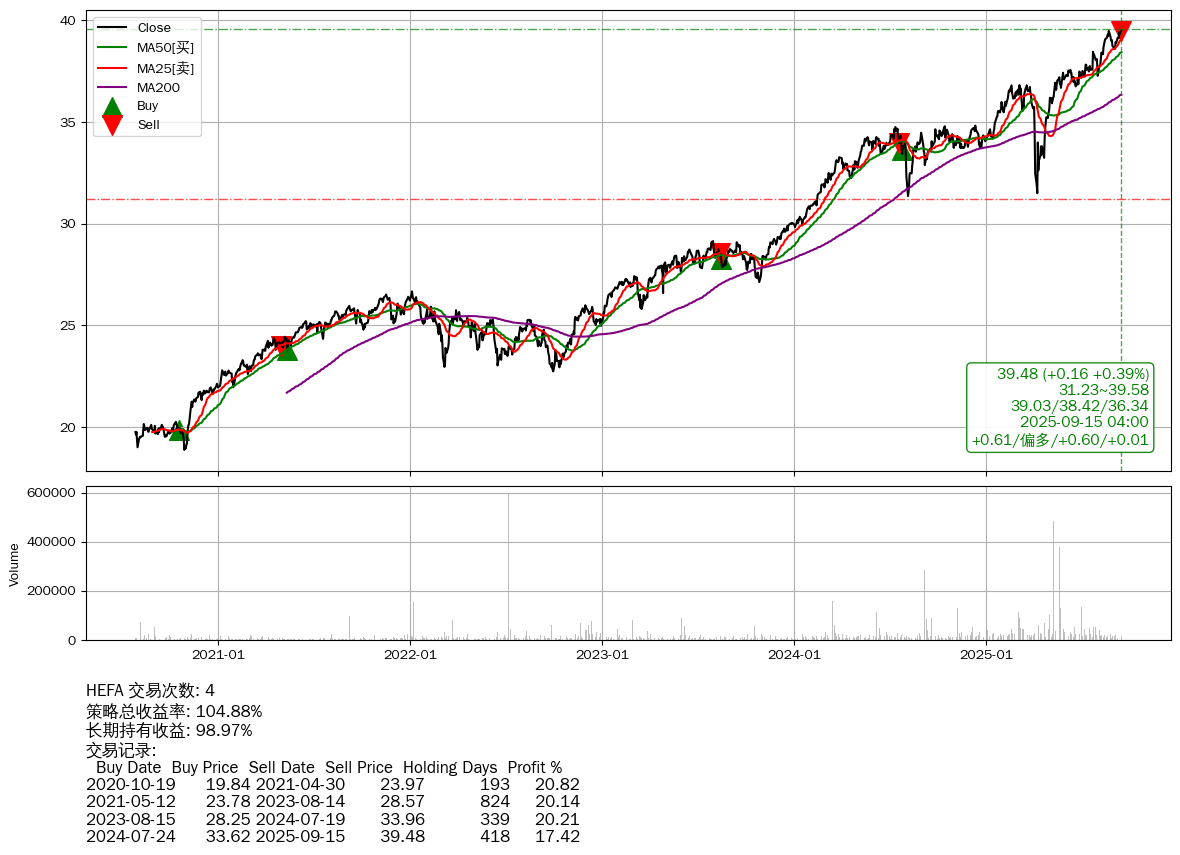 | 43 | ★HEFA | +104.88% | +98.97% | +5.92% | 4 | +0.61/偏多/+0.60/+0.01 | 2020-07-27~2025-09-15 |