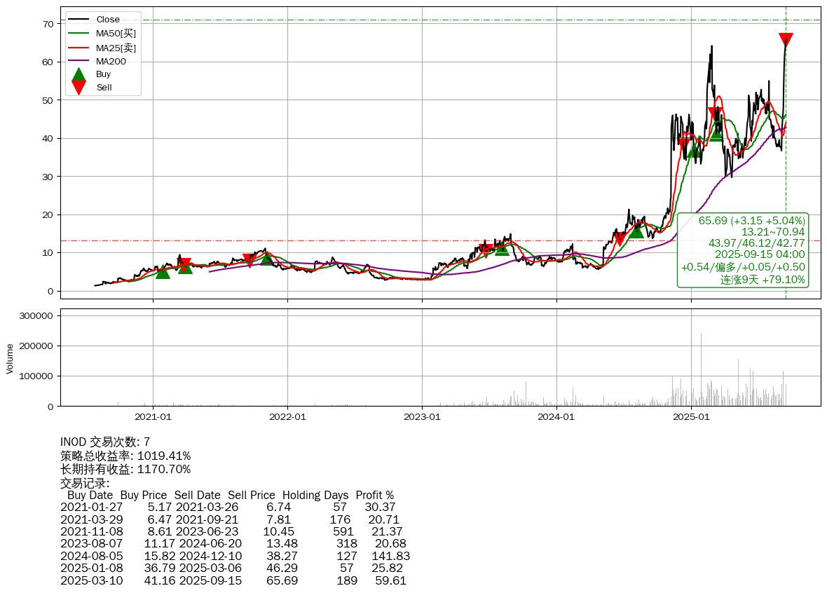 | 4 | INOD | +1019.41% | +1170.70% | -151.29% | 7 | +0.54/偏多/+0.05/+0.50 | 2020-07-28~2025-09-15 |