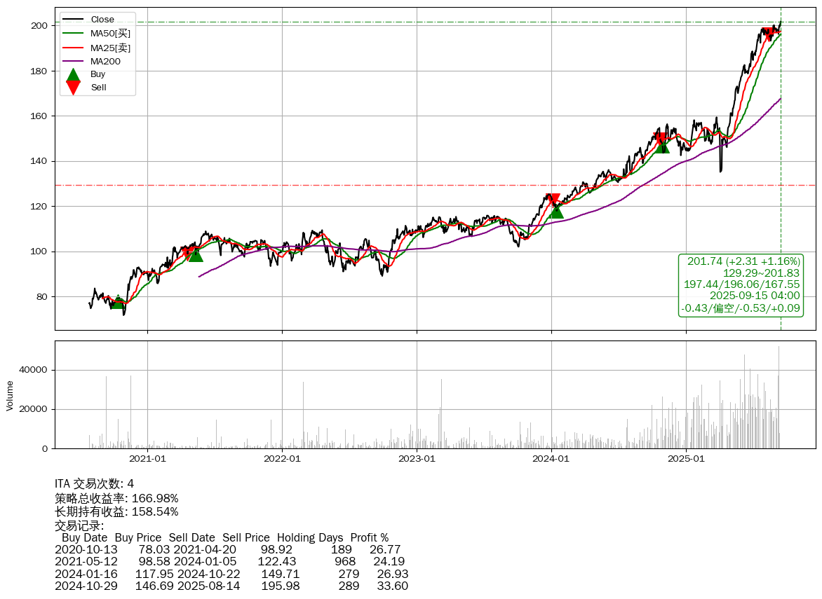 | 23 | ★ITA | +166.98% | +158.54% | +8.44% | 4 | -0.43/偏空/-0.53/+0.09 | 2020-07-27~2025-09-15 |