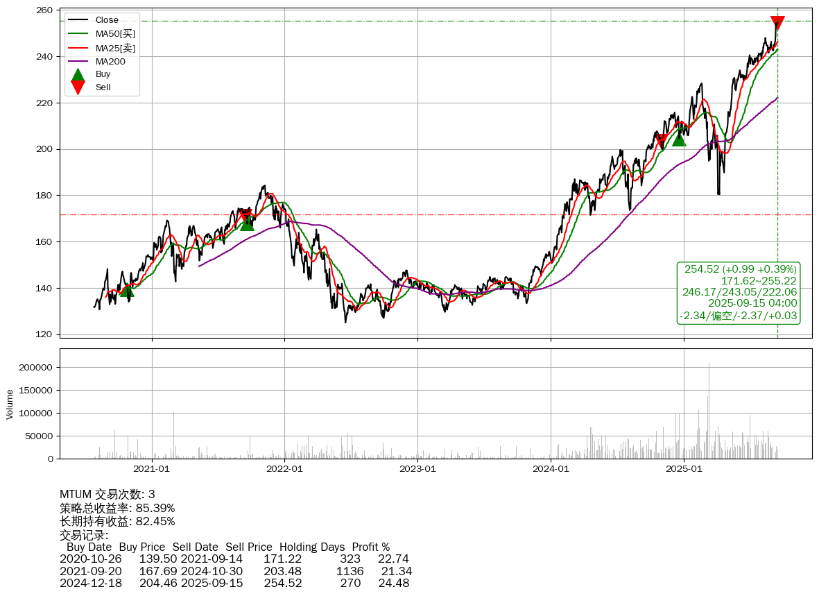 | 26 | ★GOOG | +158.31% | +241.15% | -82.84% | 3 | +1.26/偏多/+0.60/+0.66 | 2020-07-27~2025-09-15 |