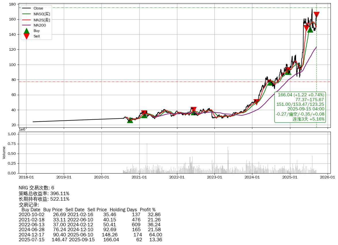 | 7 | ★NRG | +396.11% | +522.11% | -125.99% | 6 | -0.27/偏空/-0.35/+0.08 | 2018-03-07~2025-09-15 |